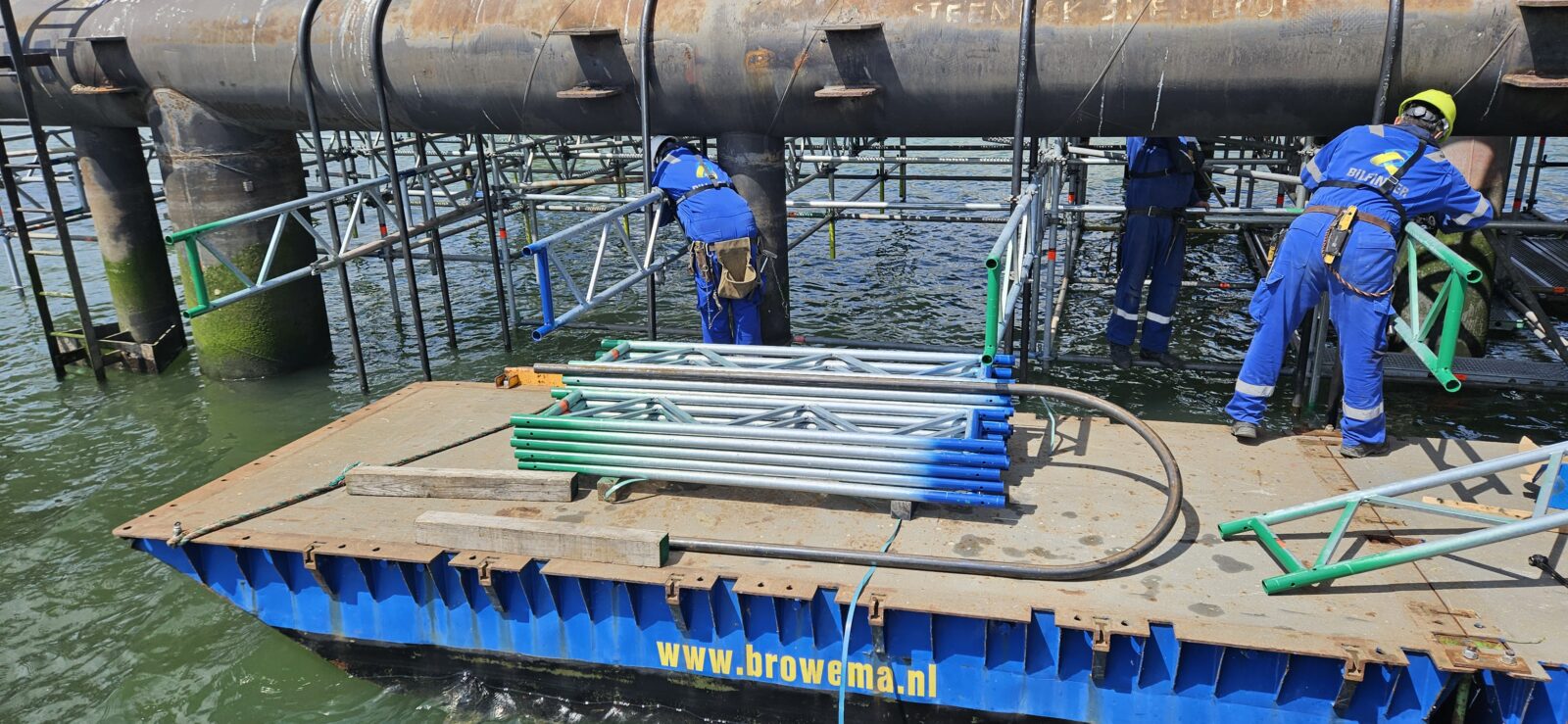 Ook waar geen vaartuigen kunnen komen, kan Browema aan de slag. Door middel van de koppelpontons kunnen er werkzaamheden vanaf het water worden uitgevoerd. Ieder ponton is gemaakt van plaatstaal en biedt daarmee de perfecte ondergrond voor steigerbouw.